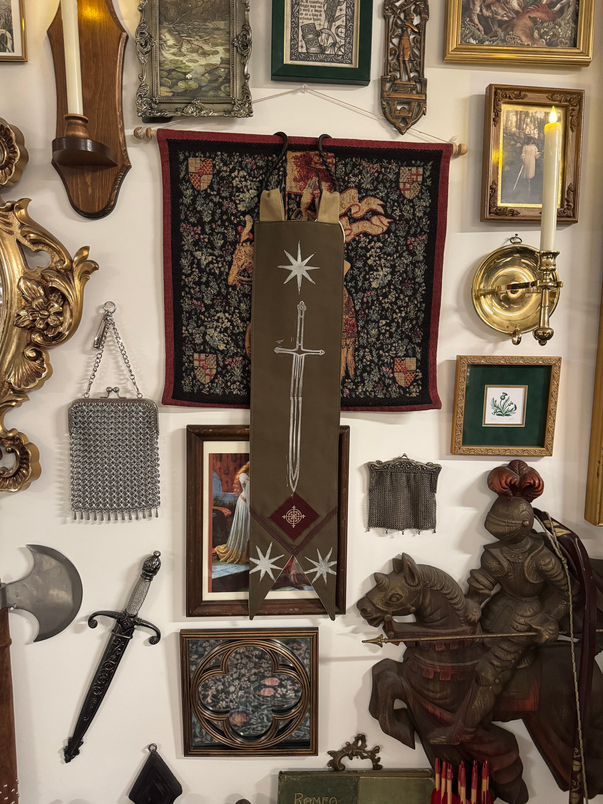 Bring a touch of old-world heraldry into your home with these medieval-inspired banners, each one sewn by Aeonian Light Company and hand-printed in my workshop. Crafted with care and bearing bold, enchanted motifs, they hang beautifully in modern halls and fantasy realms alike. Perfect for adding a dash of noble charm to any wall, nook, or gathering space.