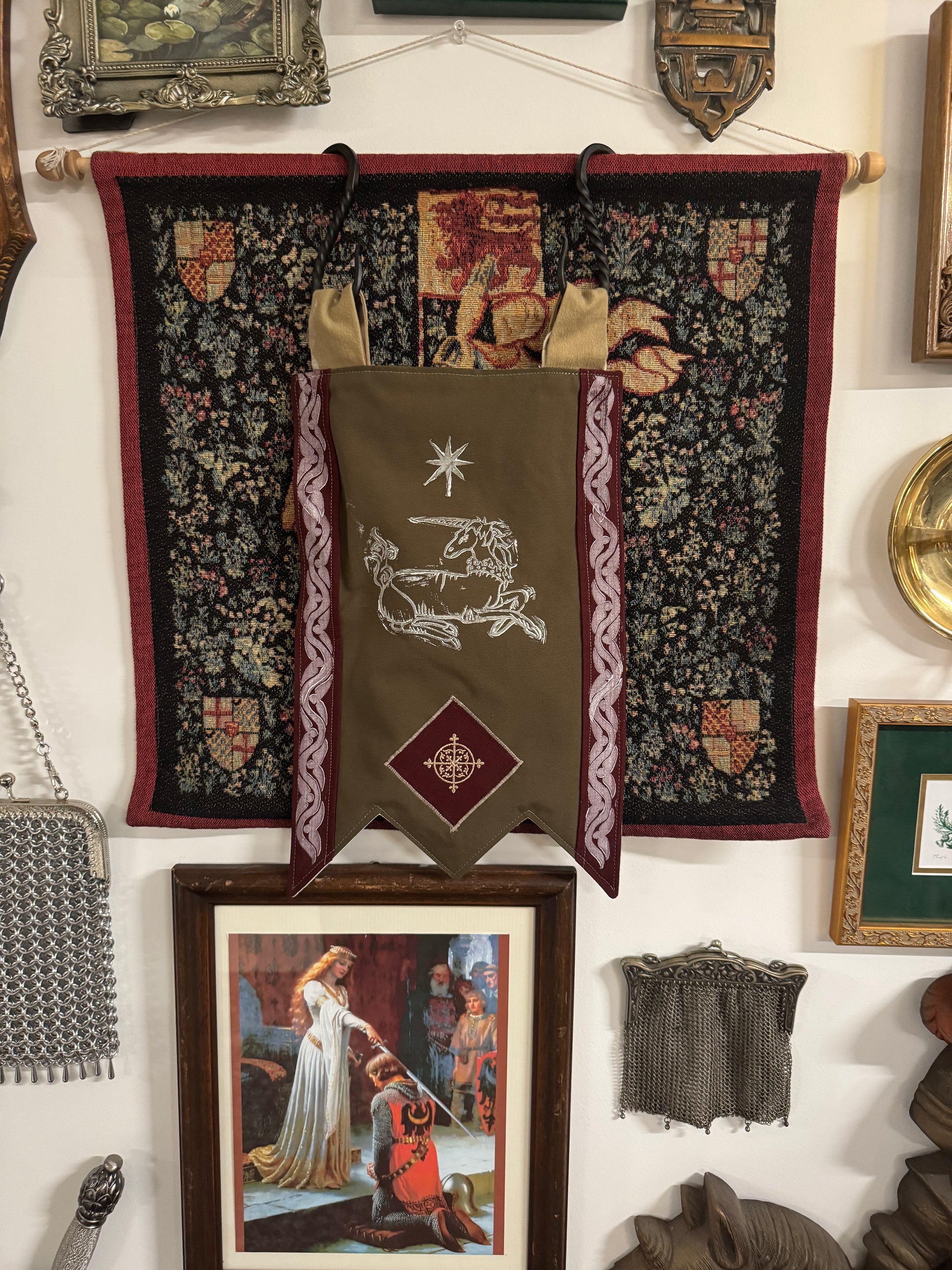 Bring a touch of old-world heraldry into your home with these medieval-inspired banners, each one sewn by Aeonian Light Company and hand-printed in my workshop. Crafted with care and bearing bold, enchanted motifs, they hang beautifully in modern halls and fantasy realms alike. Perfect for adding a dash of noble charm to any wall, nook, or gathering space.